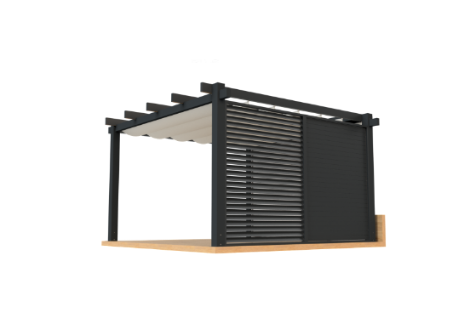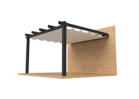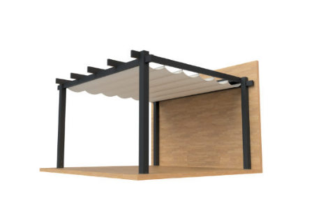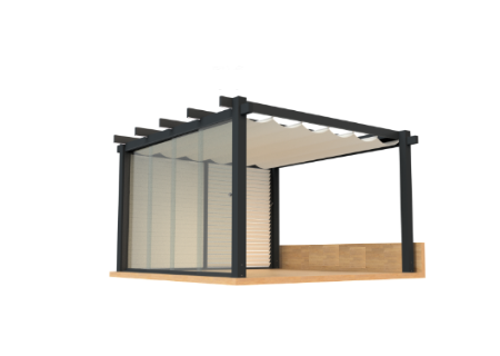 Het dak is gemaakt van een uiterst robuust weer-, en waterbesteding doek, dat zich elektrische of handmatig laat uitvouwen tot een mooi gedrapeerd zonnescherm.